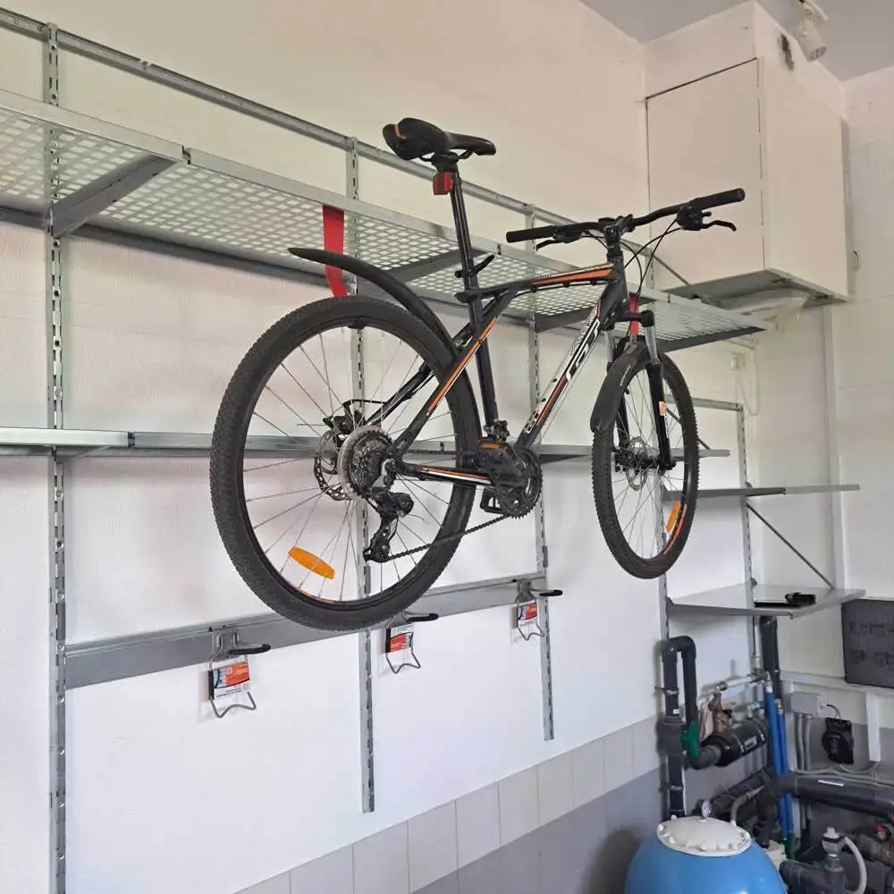 - Каждый крюк поддерживает нагрузку до 15 кг, что делает его идеальным для взрослых велосипедов.