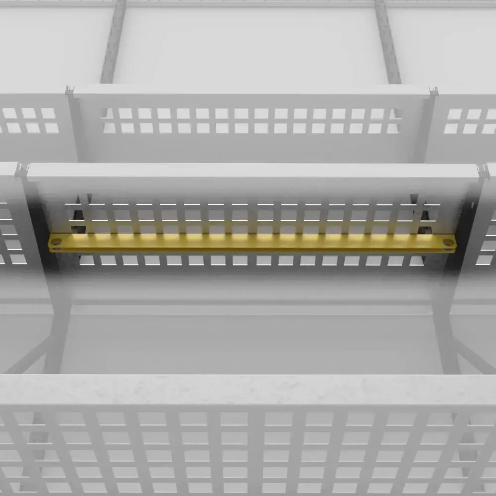 Ребро жесткости устанавливается под полкой в специальный паз на кронштейне длиной 315 мм и 520 мм (для кронштейнов длиной 200 мм установка ребра жесткости не предусмотрена). Можно установить одно ребро жесткости под каждую полку.