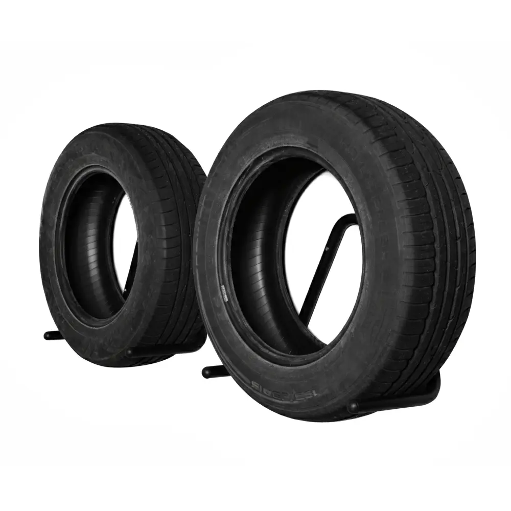Настенный крюк (подвес) — это классическое и максимально надежное решение для вертикального хранения автомобильных колес. В отличие от хранения «стопкой», подвешивание на стену предотвращает деформацию нижних покрышек и обеспечивает свободный доступ к каждому колесу комплекта.