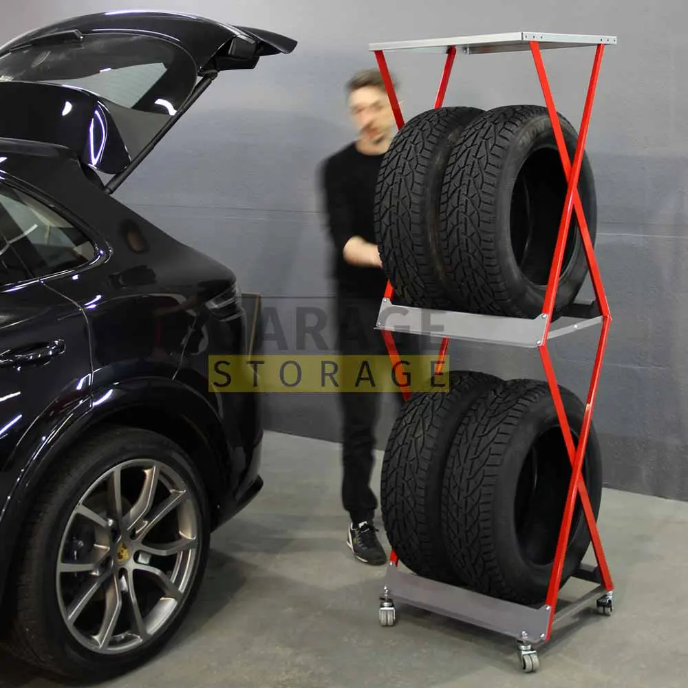 - Цвет вертикальных опор на выбор: красный, черный, серый, (цвет опор, на которых стоят шины, всегда серый).